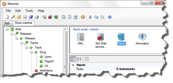 In order to import, you need a target database. This means that you need to refer to the target system, e.g. check your data warehouse, business intelligence, archival or search solution for details on how to load data into it. If there's no target yet, i.e. if the target is being developed as part of the transfer process, the Marshal Editor can provide one for you. Read more on how to generate a target database.