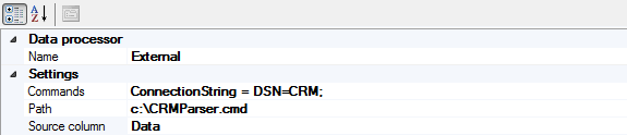 When an external data processor executes, it launches the executable, specified in the Path property, with one command line argument; the path to an XML document containing the configured parameters.